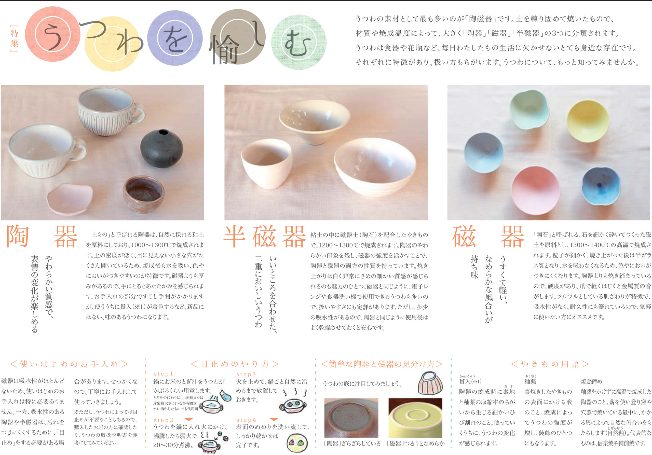 うつわは食器や花瓶など、毎日わたしたちの生活に欠かせないとても身近な存在です。うつわについて、もっと知ってみませんか?