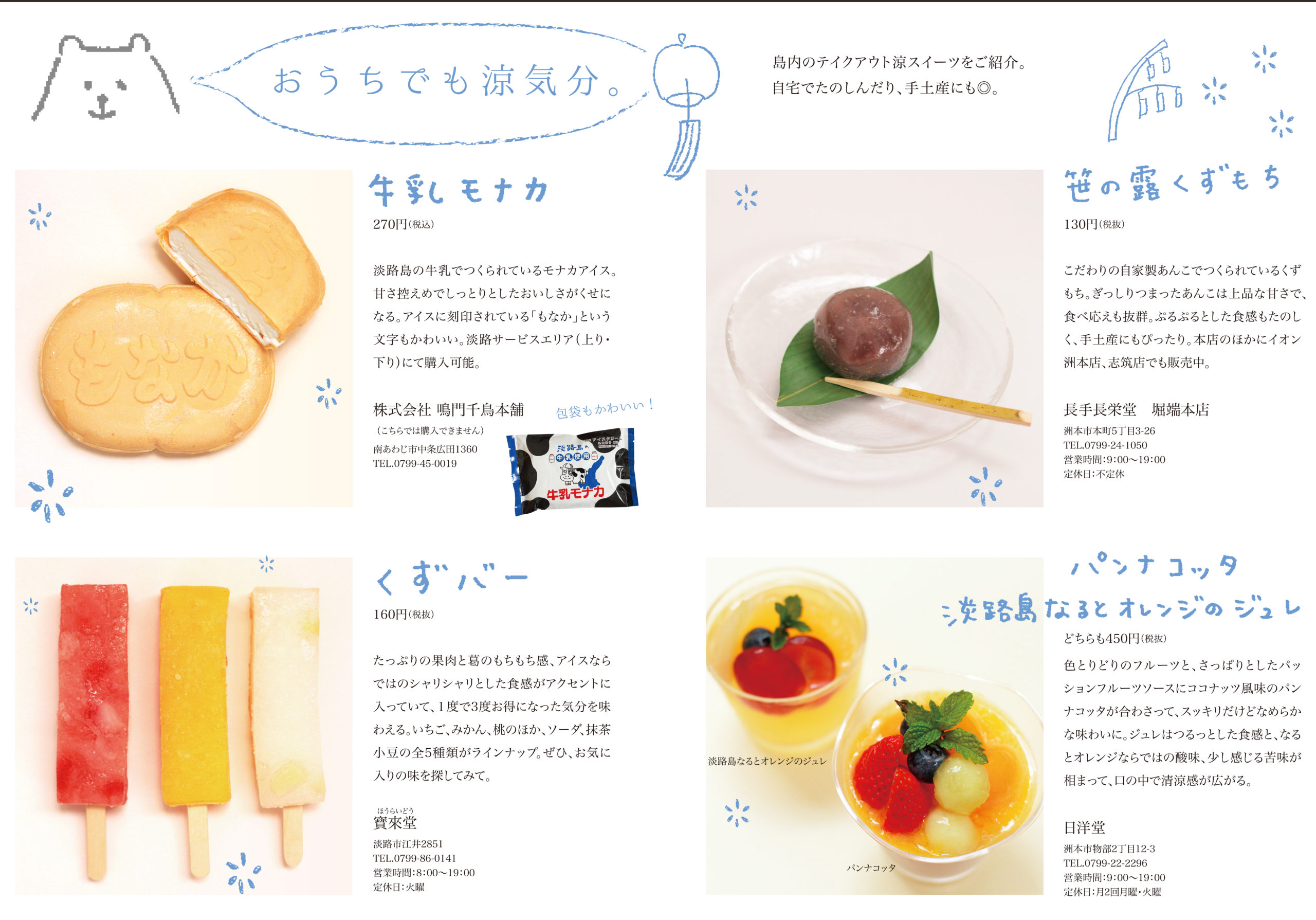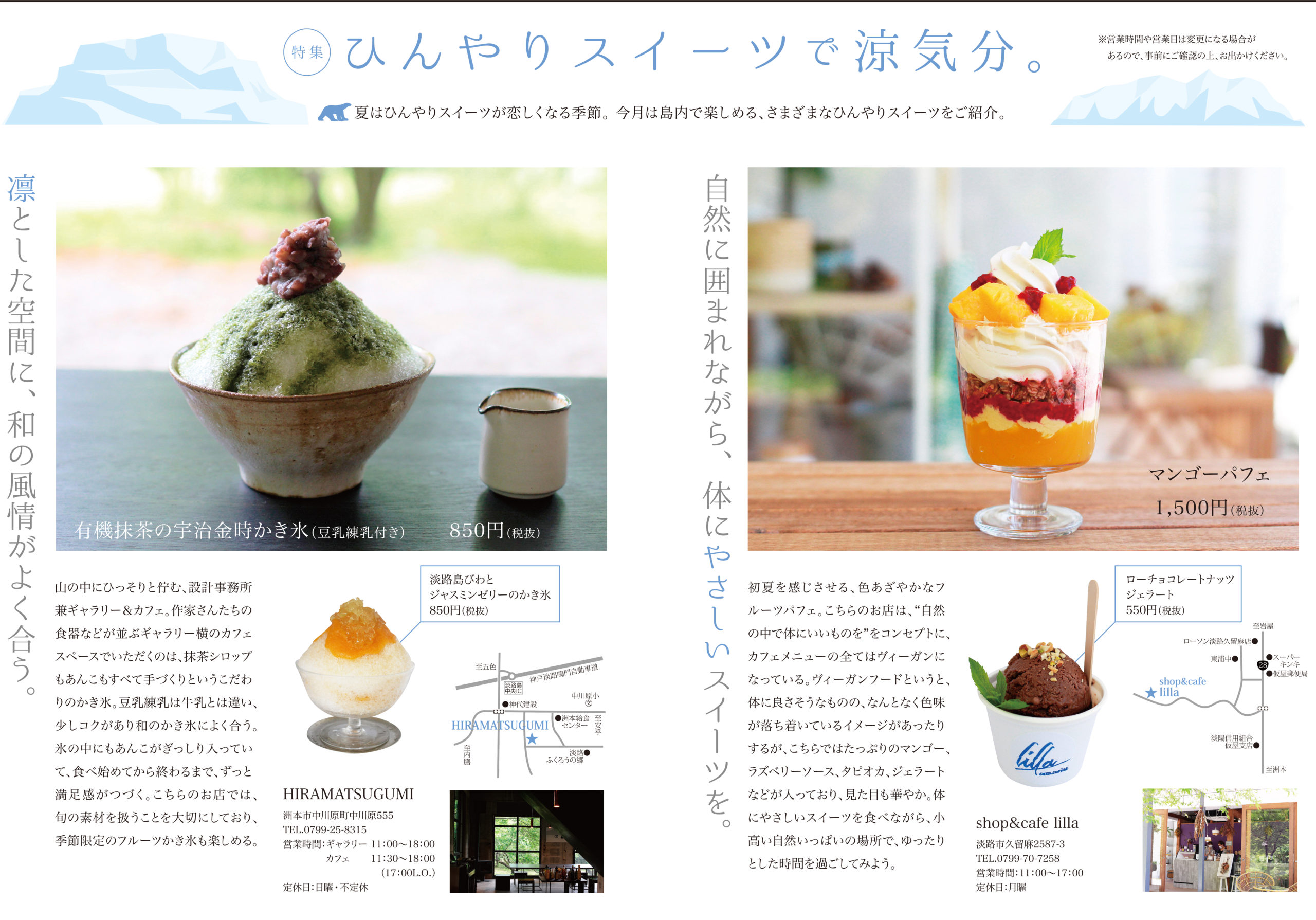 夏はひんやりスイーツが恋しくなる季節。今月は島内で楽しめる、様々なひんやりスイーツをご紹介。夏の花さんぽコーナーも。