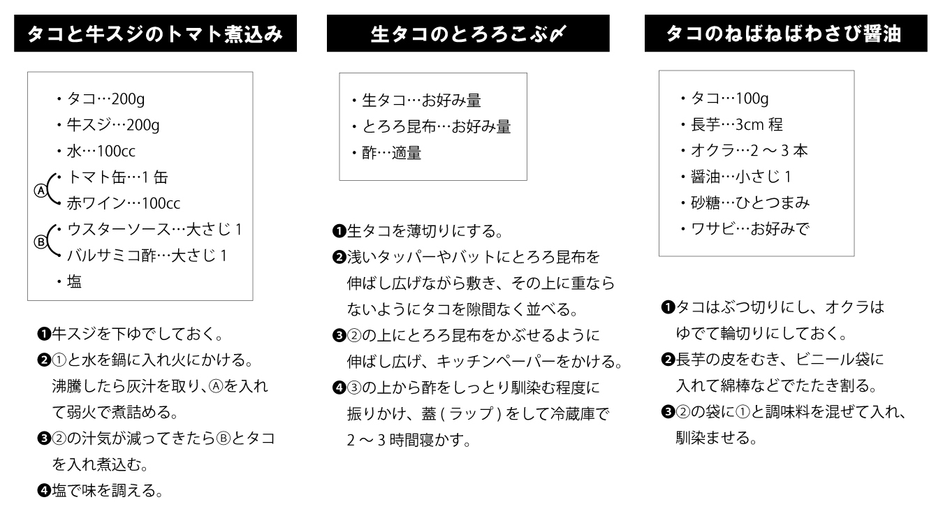 ちなみに3番目のレシピ、タコの栄養素であるタウリンは長芋やオクラなどのネバネバと取るとより効果的らしく、夏バテの疲労回復にもぴったり☆