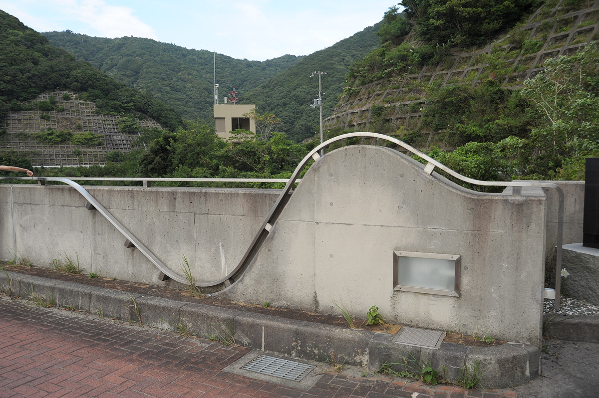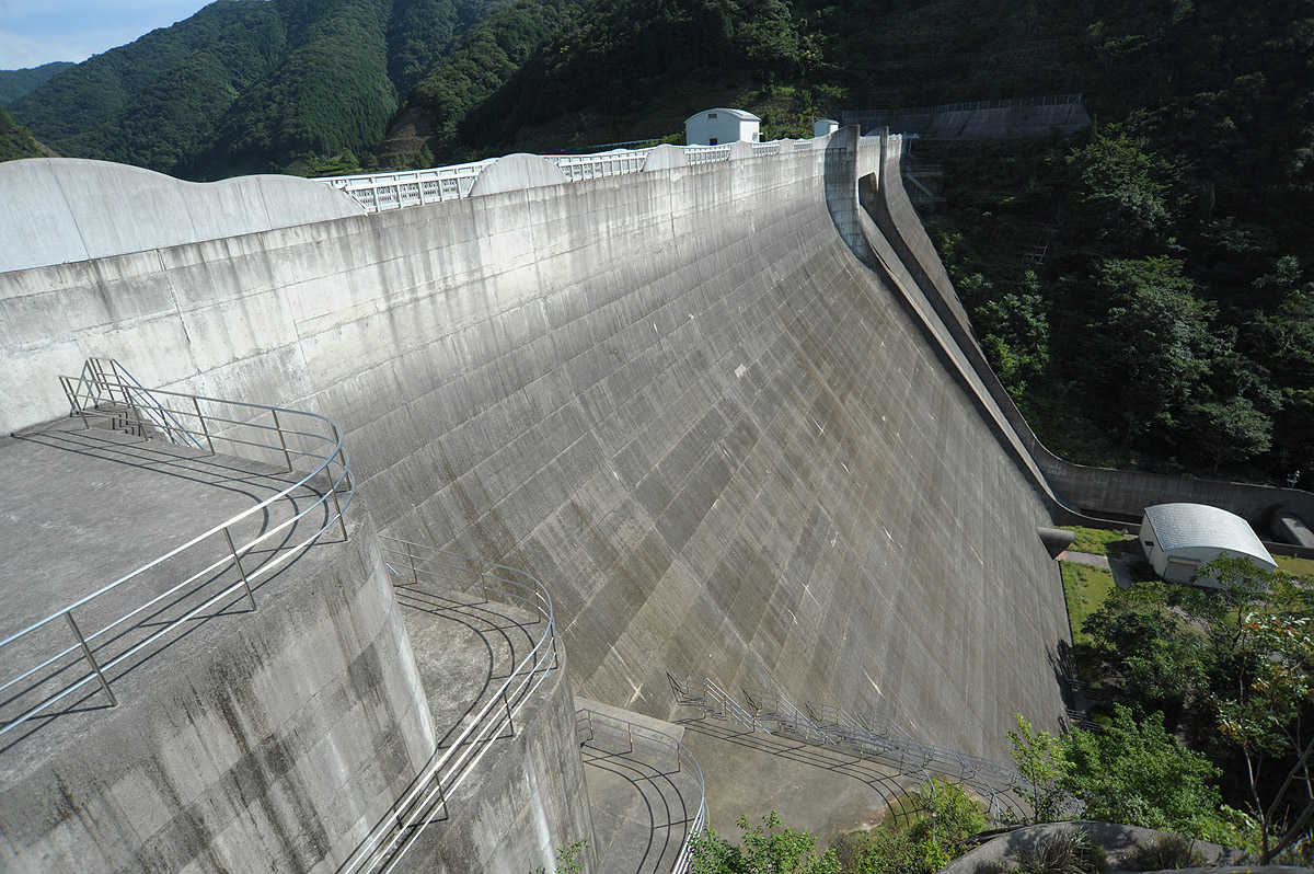 ダム本体のサイズはかなりボリュームがあるが、堤頂部に積極的に曲線ラインの意匠が取り入れられていて、親しみが持てる印象だ。