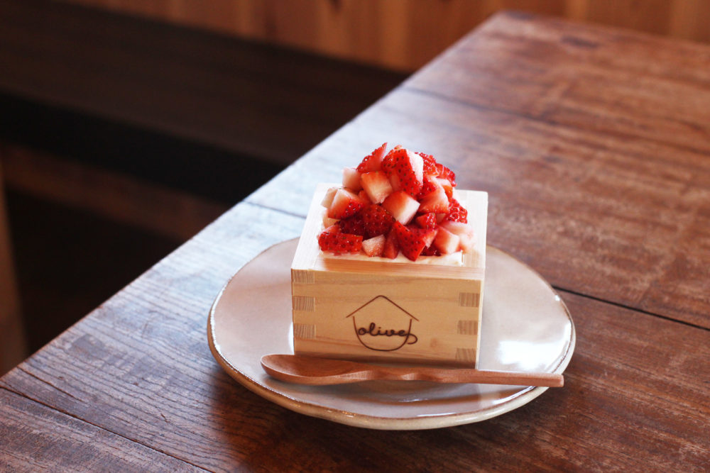 いちご大好きな店主さんがつくるスイーツは、その時期に一番おいしいと思ういちごを目で見て食べて厳選するこだわり。今の時期おすすめの品種は少し酸味がある「さんベリー」なんだそう。かわいい升の中には甘いティラミスクリーム(マスカルポーネ・卵・チーズ)とちょっぴり苦みを効かせたコーヒーのスポンジが層のように重なっていて、いちごの酸味、甘み、苦みの三味合わさった大人スイーツが味わえる。