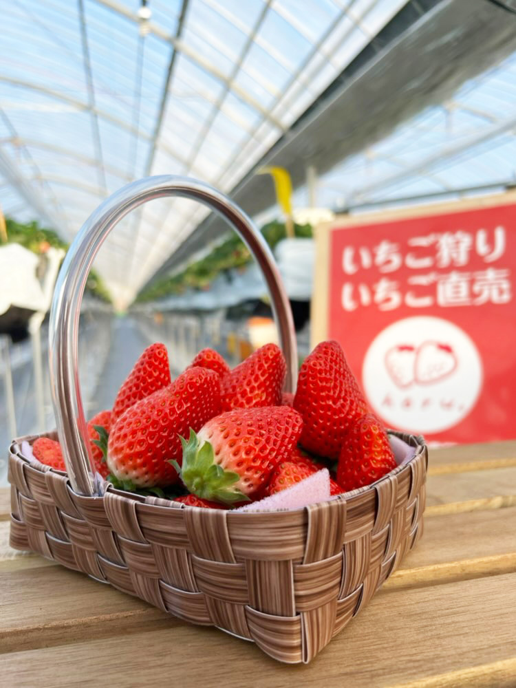 のどかな里山にあるいちご農園。栽培方法や減農薬にこだわっていて安心して食べられる。愛情いっぱいに丁寧に育てられたいちごは甘酸っぱくてジューシーで、ここだから味わえる贅沢な美味しさ。