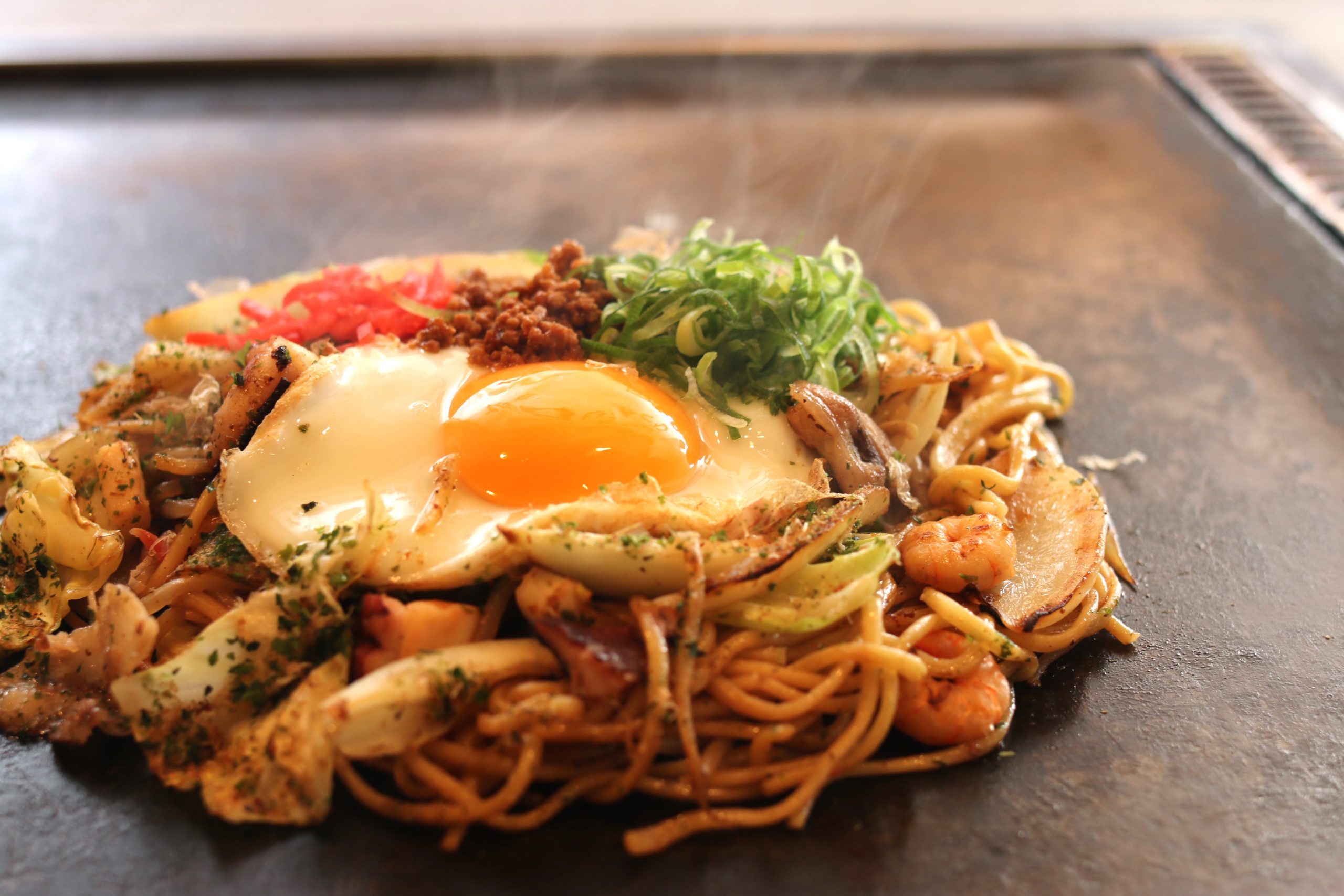 目の前の鉄板から上がる美味しい湯気を浴びながら、トッピングのピリ辛ミンチや目玉焼き、紅生姜、ネギの薬味を絡めてモッチモチの麺を食べ進むと、ちょくちょく顔を出す香ばしくて甘い玉ねぎが良いアクセントなんだなぁ。