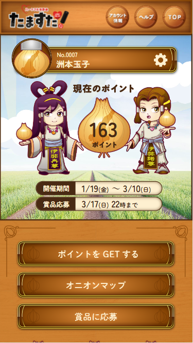 そうそう、合間で玉ねぎ植えアプリゲームをして、ポイントゲットできたり