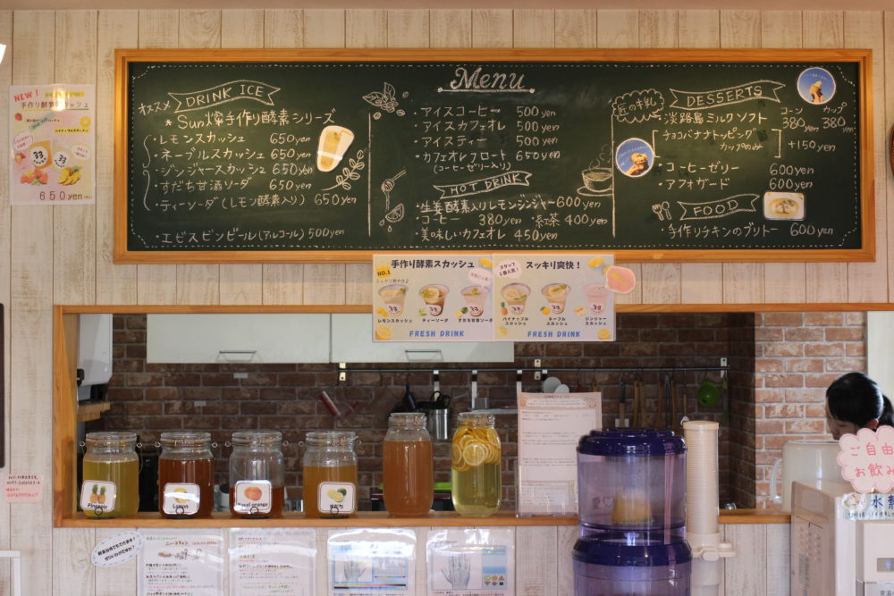 自家製酵素ドリンクが売っているカフェも併設。ランチ付きプランなどもあります。