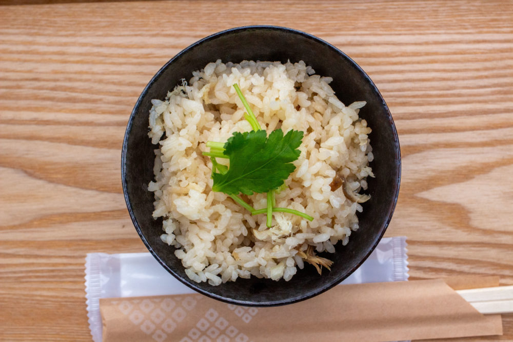 鯛の出汁とほぐし身と共に炊き上げた『鯛めし』もオススメ。残ったラーメンのスープを足して、出汁茶漬け風に食べるのも◎。