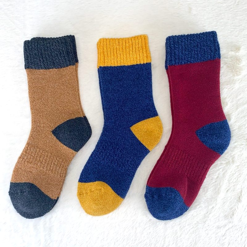 あたたかい糸と全パイル編みで空気層を作ることにより、足全体をしっかりと温めてくれる靴下。寒い季節もハッピーな気分になれるポップなカラーが◎。