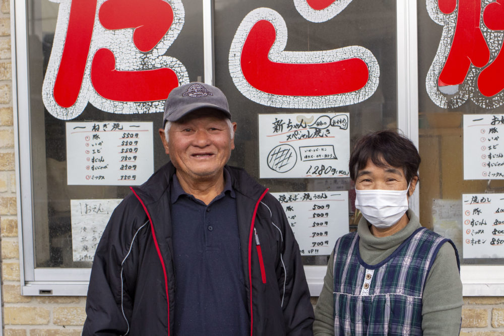 店名は写真左のお父さんの名から。お店にはお母さん、娘さん、お孫さんの女3代看板娘たちが立ちます。新ちゃんは只今店横に、朝日が見える展望デッキを制作中なのだとか。