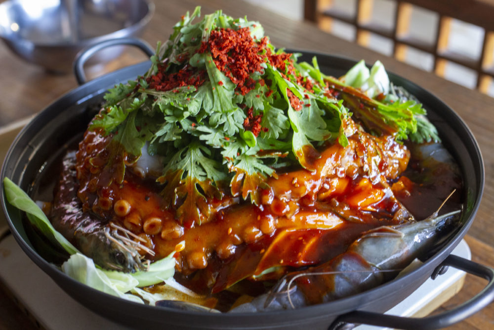 ナッコプセとは手長タコ、ホルモン、海老が入った韓国釜山の郷土料理。出汁にこだわり、イリコ、トビウオなど数種類の魚介から引いています。辛味には韓国の唐辛子を使用、見た目ほどの辛さはなく旨みを味わうよいアクセントに。冬・春シーズンは真蛸を使用し、海老も殻ごと入れ旨みをプラス、ホルモンは甘く、素材すべてが相まって深いコクを生み出し、噛みしめるほどにおいしい。