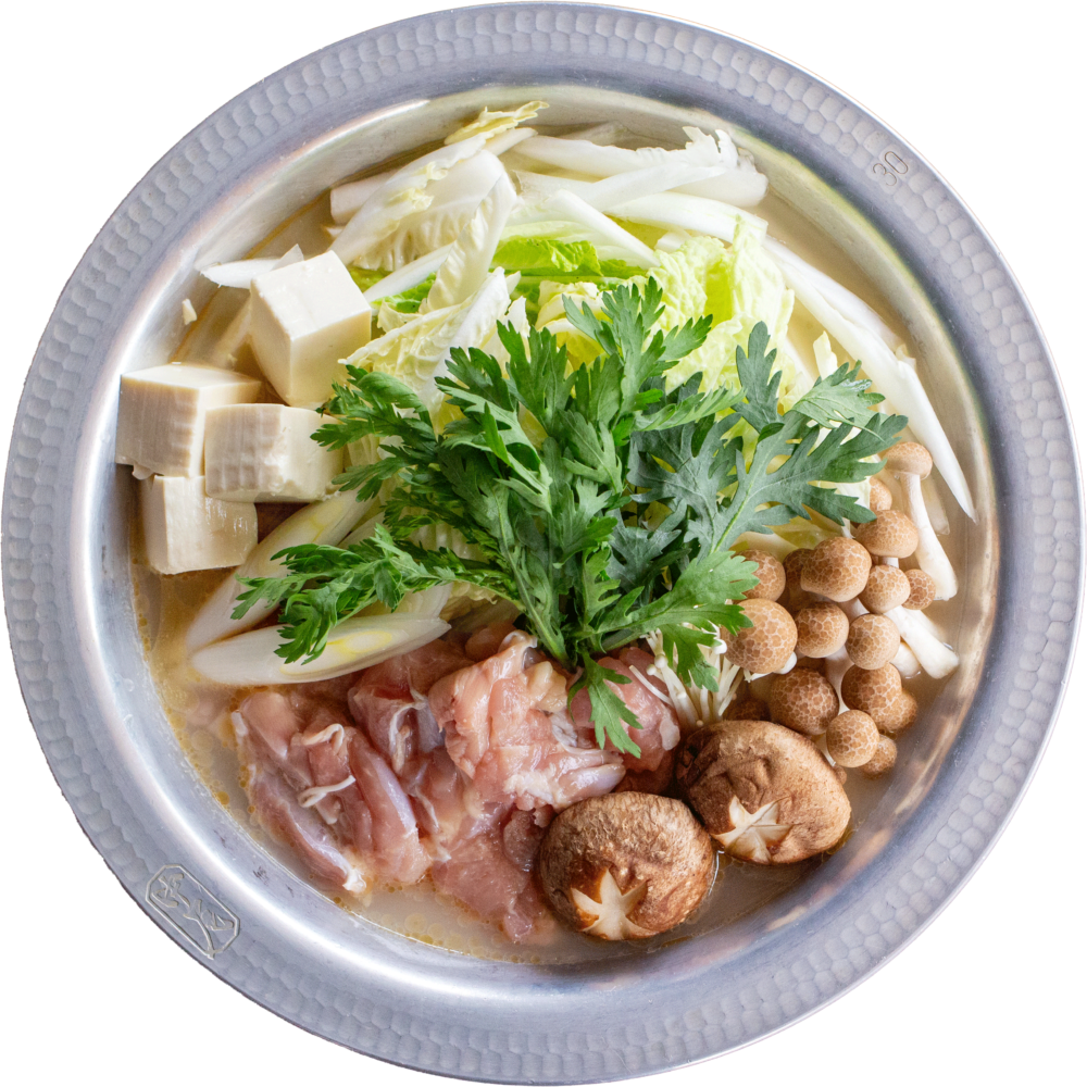 鍋を始める前にまず、じっくり時間をかけて作られた鶏白湯のスープに少しの塩と薬味ネギを添えて味わいます。ぎゅっと詰まった鶏の旨みで喉を温め、その後に具材を加え、お好みでポン酢につけて鍋を愉しみます。この鍋の一番のおたのしみは〆。食材の旨味が加わったスープ、そこにひと手間を加えストレート細麺のラーメンで〆。お腹も充ち、ほんのり汗ばむのが心地よい。〆はうどんや雑炊も可能です。